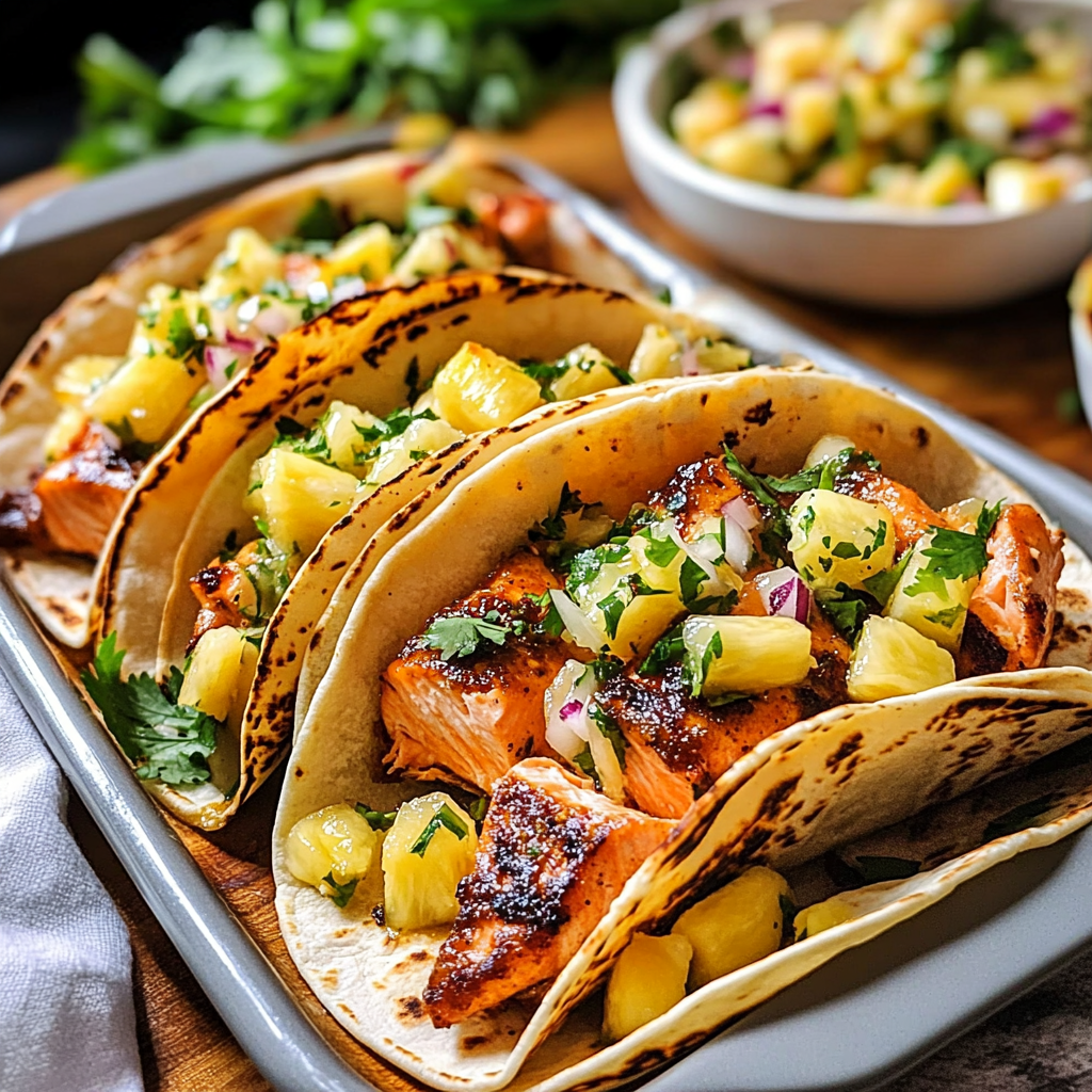 Chipotle Honey Salmon Tacos with Pineapple Salsa