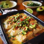 Coconut Lime Fish with Avocado Salsa is an easy yet flavorful dish that combines the best of tropical ingredients with fresh, healthy produce. It’s light but satisfying, with a perfect balance of rich coconut, tangy lime, and creamy avocado. Whether you’re looking for a quick dinner, a dish for a special occasion, or a crowd-pleasing seafood recipe for a party, this dish ticks all the boxes. The simplicity of the preparation makes it accessible to home cooks of all levels, while the bold, bright flavors ensure that it will always be a memorable meal. Give it a try, and let it transport your taste buds to a sunny beach with every bite!