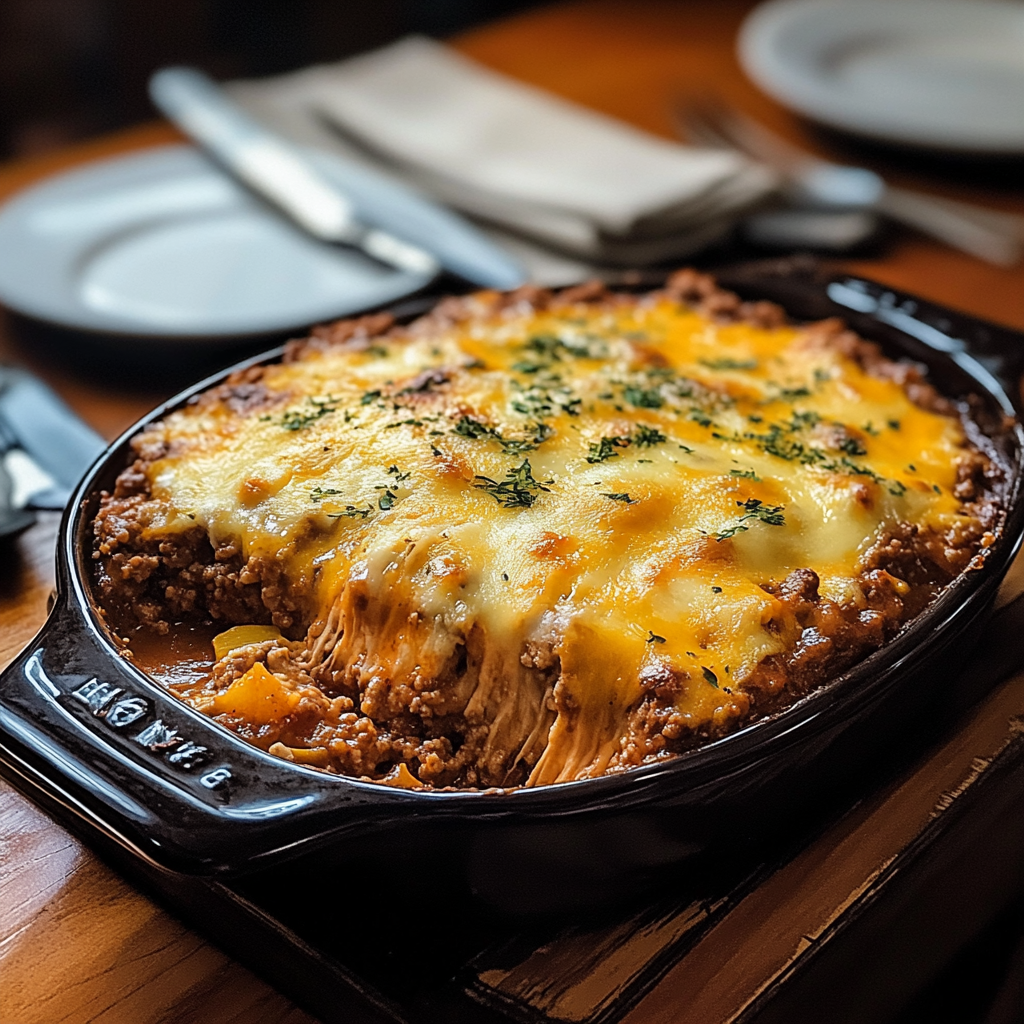 This recipe is perfect for busy families or anyone looking for an easy, budget-friendly meal that delivers maximum flavor with minimal effort. The layers of seasoned ground beef, thinly sliced potatoes, and a creamy, cheesy topping create a casserole that’s comforting, filling, and sure to be a hit with both kids and adults.