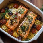 The Mediterranean Salmon Bake is more than just a culinary delight; it’s a celebration of vibrant flavors and wholesome ingredients. This dish not only satisfies appetites but also nourishes the body. It’s simple to prepare yet has a sophisticated flair, making it perfect for any occasion. Whether you’re enjoying it with family, at a dinner party, or as part of meal prep, the Mediterranean Salmon Bake is sure to impress.