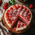 Strawberry Cake is an incredible treat that captures the essence of summer and sweetness in every bite. This delightful dessert stands out not only for its beautiful appearance but also for its light, fluffy texture and rich strawberry flavor. Imagine a moist cake infused with the luscious taste of ripe strawberries, layered with creamy frosting, and topped with fresh berries. It’s the perfect birthday cake, a light dessert for family gatherings, or simply a treat to enjoy during a sunny afternoon.