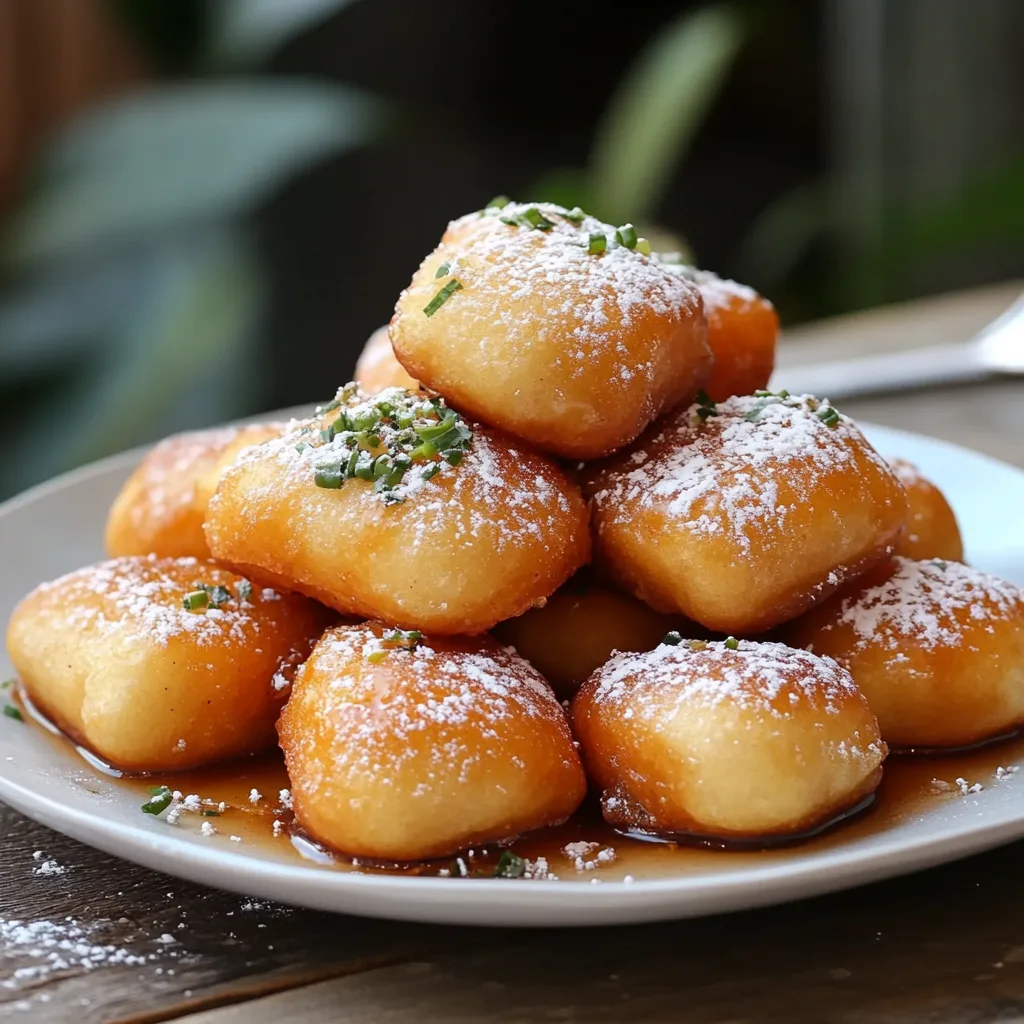 Vanilla French Beignets are a delightful treat that brings a taste of Paris right to your kitchen. These light, fluffy pastries are generously dusted with powdered sugar, making them a heavenly way to indulge on any occasion. Their soft interior and crispy exterior create a wonderful texture, while the subtle flavor of vanilla makes every bite a slice of bliss. Whether enjoyed with your morning coffee or as a decadent dessert, these beignets will surely impress anyone lucky enough to savor them.